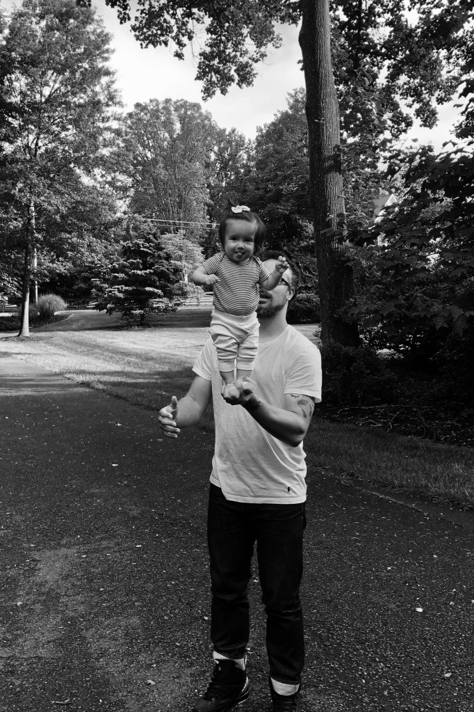 Standing in the kitchen, we watched as Brian held Mia in his arms, trying to balance her like a baseball bat in one hand. Both of her feet fitting perfectly in a single palm, while his other hand stabilized and repositioned her. Unwittingly, Mia grabbed at his neck, afraid to let go, afraid she would fall to the hardwood floor below. She would get close to letting go, then pull herself right back into the safety of her own arms around him. All the while Brian softly repeated, “Trust Daddy, trust Daddy,” over and over again in her ear. I’m not sure if his words even registered past her fear that she would fall, that her Daddy wouldn’t be able to hold her up. He, finally, gently placed her on the ground in front of him.